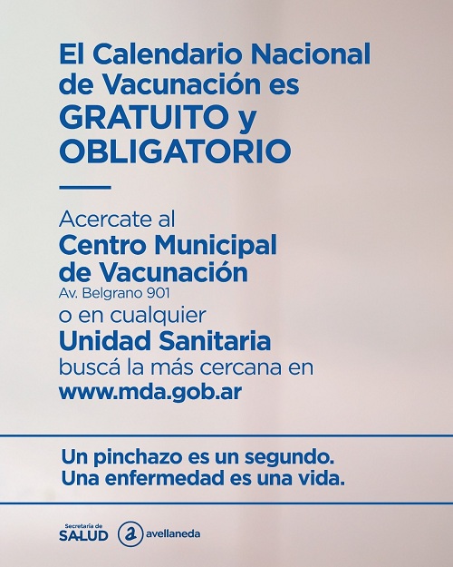 Acercate al CENTRO MUNICIPAL DE VACUNACIÓN, en Av. Belgrano 901, o a la UNIDAD SANITARIA más cercana, consultá en: https://www.mda.gob.ar/…/secretari…/unidades-sanitarias/