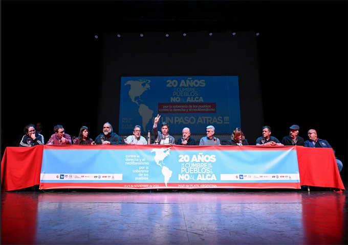 El gobernador de la provincia de Buenos Aires, Argentina, Axel Kicillof, clausuró este miércoles 5 de noviembre el encuentro en conmemoración de los 20 años de la Cumbre de los Pueblos y el «No al ALCA» en el Teatro Auditorium de Mar del Plata, marcando el cierre de dos jornadas de debate protagonizadas por organizaciones sociales, sindicales y políticas.