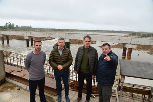 El ministro de Infraestructura y Servicios Públicos, Gabriel Katopodis, recorrió junto al intendente de Roque Pérez, Maximiliano Sciaini, la construcción de dos nuevos puentes que se realizan en el marco del Plan Maestro Integral de la cuenca del río Salado.